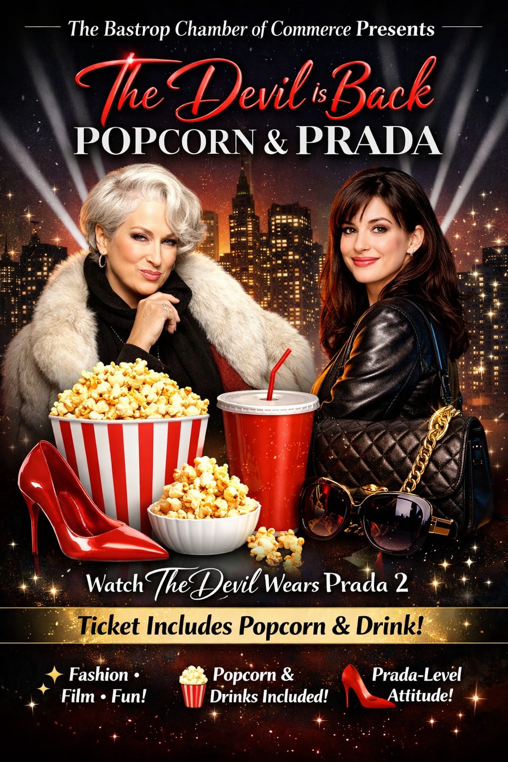 The heels are higher, the stakes are fiercer, and the Devil is back!Join the Bastrop Chamber of Commerce for a stylish night at the movies as we watch The Devil Wears Prada 2.