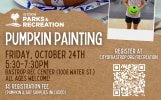 Drop by the Rec Center on Friday, October 24th between 5:30PM and 7:30PM for some Pumpkin Painting! Come get festive with us! Pumpkins and art supplies included with registration. So bring your family and your friends and come paint