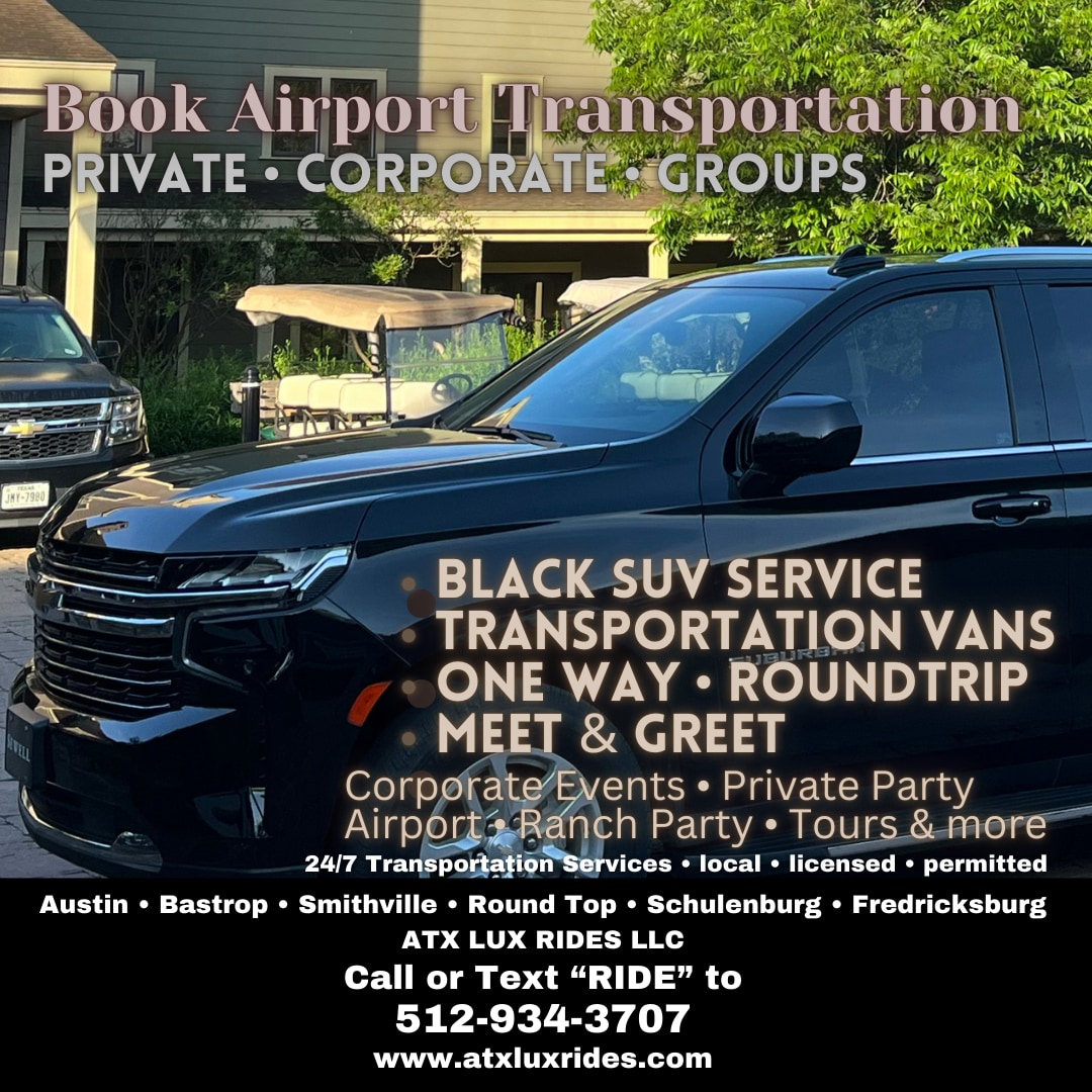We are your local 24/7 Taxi and Shuttle Service, Call or Text “RIDE†to 512-934-3707 or find us at www.atxluxrides.com Licensed & Permitted, Private transportation, Corporate Events, Private Events.