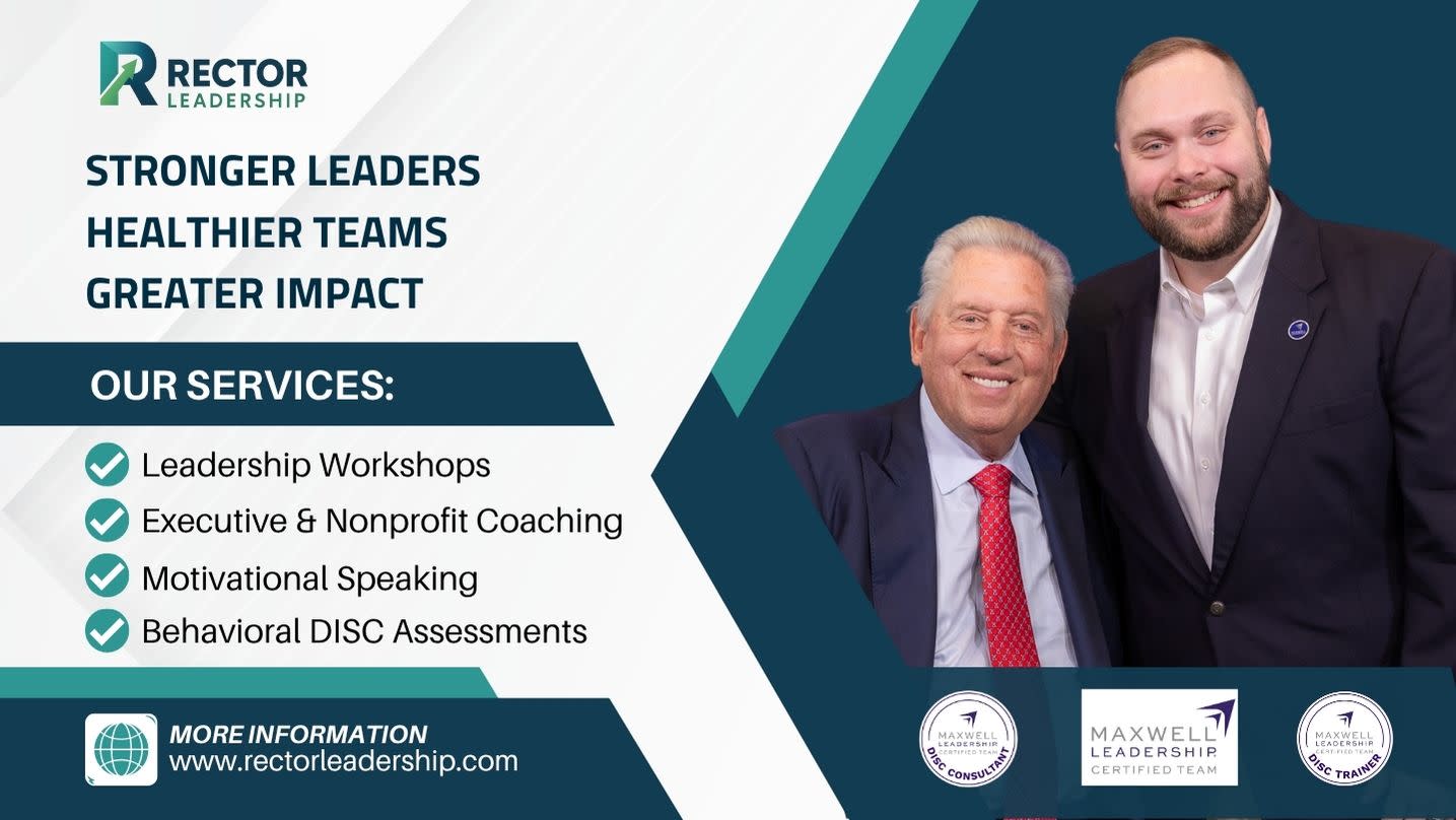 Led by Jon Rector, a Maxwell Certified Leadership Coach, Speaker, and Trainer, Rector Leadership provides practical, people-focused leadership training designed to strengthen communication, build healthy workplace culture, and develop more effective leaders at every level of an organization.